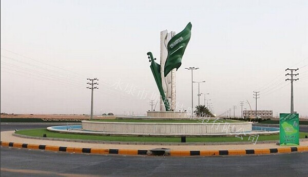 沙特的不銹鋼國旗雕塑,夜晚在燈光的照射下是不是非常漂亮呢?!
