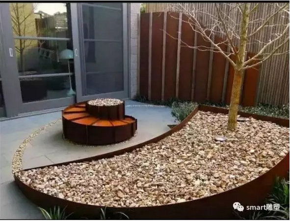 在20世紀(jì)初,國(guó)外一些前衛(wèi)的藝術(shù)家將鋼材用于雕塑創(chuàng)作。由于耐候鋼鐵銹是材料自身的一種自然狀態(tài),十分符合藝術(shù)表達(dá)的真實(shí)性原則,久而久之,耐候鋼材成為現(xiàn)代景觀造型藝術(shù)設(shè)計(jì)的材料之一。