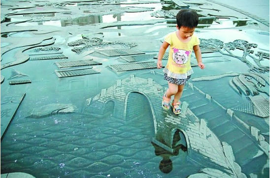 地雕,可能你見過很多,但太小的、缺乏創(chuàng)意的、底蘊不夠的經(jīng)常被你轉(zhuǎn)身遺忘,而娛樂性的往往好玩之后沒有太多印象!比如很多公園就有地面上的繪畫,但都記不清了。