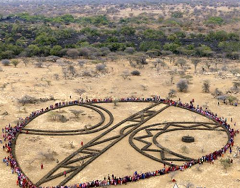 澳大利亞藝術(shù)家安德魯·羅杰斯前往非洲西南部的納米比亞進(jìn)行一次旅行,與游牧的Himba部落成員共同完成一件石頭的地質(zhì)印痕或是地面雕塑。